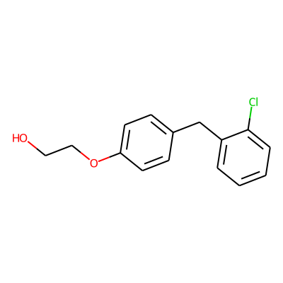 OCCOc1ccc(Cc2ccccc2Cl)cc1Sugarmoiety: