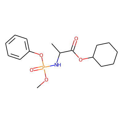 COP(=O)(NC(C)C(=O)OC1CCCCC1)Oc1ccccc1| HBA: | 6 | RingCount: | 2 |