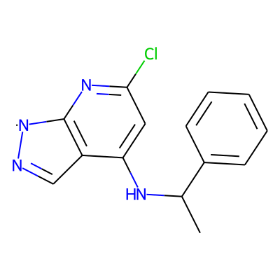 CC(Nc1cc(Cl)nc2c1C=N[N]2)c1ccccc1| HBA: | 4 | RingCount: | 3 |