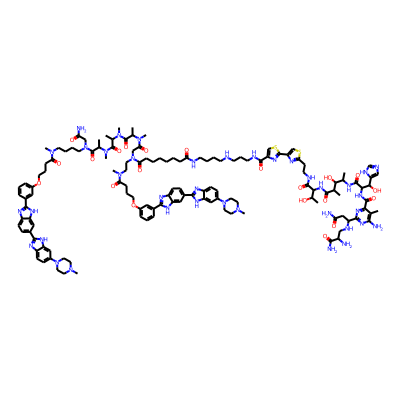 Cc1c(N)nc(C(CC(N)=O)NCC(N)C(N)=O)nc1C(=O)NC(C(=O)NC(C)C(O)C(C)C(=O)NC(C(=O)NCCc1nc(-c2nc(C(=O)NCCCNCCCCNC(=O)CCCCCCC(=O)N(CCN(C)C(=O)CCCOc3cccc(-c4nc5ccc(-c6nc7ccc(N8CCN(C)CC8)cc7[nH]6)cc5[nH]4)c3)CC(=O)N(C)C(C)C(=O)N(C)C(C)C(=O)N(C)C(C)C(=O)N(CCCCN(C)C(=O)CCCOc3cccc(-c4nc5ccc(-c6nc7ccc(N8CCN(C)CC8)cc7[nH]6)cc5[nH]4)c3)CC(N)=O)cs2)cs1)C(C)O)C(O)c1cnc[nH]1