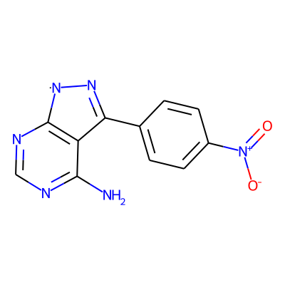 Nc1ncnc2c1C(c1ccc([N+](=O)[O-])cc1)=N[N]2| HBA: | 8 | RingCount: | 3 |