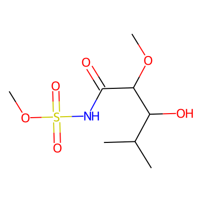 COC(C(=O)NS(=O)(=O)OC)C(O)C(C)C| HBA: | 7 | RingCount: | 0 |