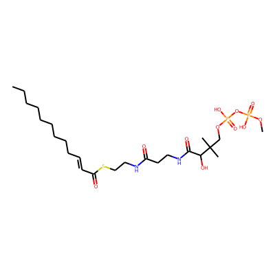 CCCCCCCCCC=CC(=O)SCCNC(=O)CCNC(=O)C(O)C(C)(C)COP(=O)(O)OP(=O)(O)OC| HBA: | 13 | RingCount: | 0 |