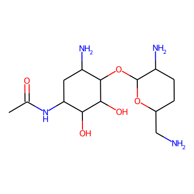 CC(=O)NC1CC(N)C(OC2OC(CN)CCC2N)C(O)C1O| HBA: | 9 | RingCount: | 2 |