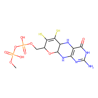 COP(=O)(O)OP(=O)(O)OCC1OC2Nc3nc(N)[nH]c(=O)c3NC2C(S)=C1S| HBA: | 14 | RingCount: | 3 |