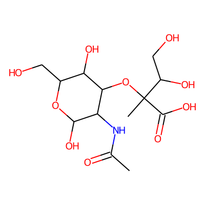 CC(=O)N[C@H]1[C@H](O)O[C@H](CO)[C@H](O)[C@@H]1O[C@](C)(C(=O)O)[C@@H](O)COAglycone: