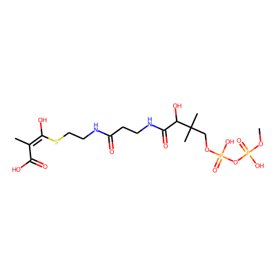 COP(=O)(O)OP(=O)(O)OCC(C)(C)C(O)C(=O)NCCC(=O)NCCSC(O)=C(C)C(=O)OHBA: | 15 | RingCount: | 0 |