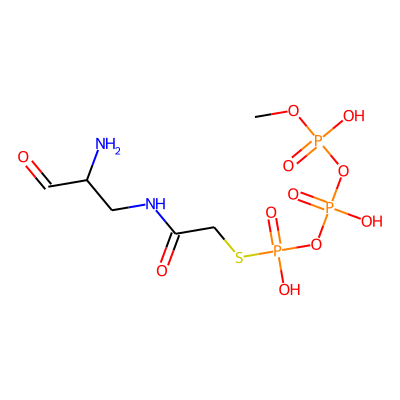 COP(=O)(O)OP(=O)(O)OP(=O)(O)SCC(=O)NCC(N)C=OHBA: | 13 | RingCount: | 0 |
