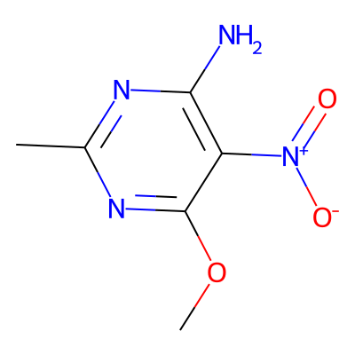 COc1nc(C)nc(N)c1[N+](=O)[O-]| HBA: | 7 | RingCount: | 1 |
