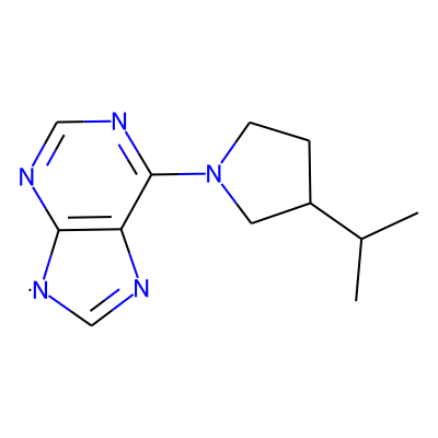 CC(C)C1CCN(c2ncnc3c2N=C[N]3)C1| HBA: | 5 | RingCount: | 3 |