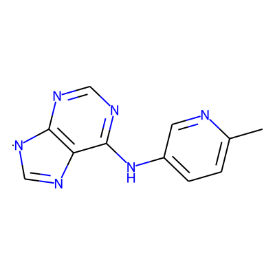 Cc1ccc(Nc2ncnc3c2N=C[N]3)cn1| HBA: | 6 | RingCount: | 3 |
