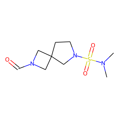 CN(C)S(=O)(=O)N1CCC2(CN(C=O)C2)C1| HBA: | 6 | RingCount: | 2 |