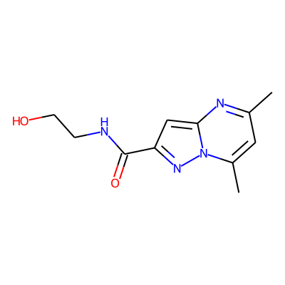Cc1cc(C)n2nc(C(=O)NCCO)cc2n1| HBA: | 6 | RingCount: | 2 |