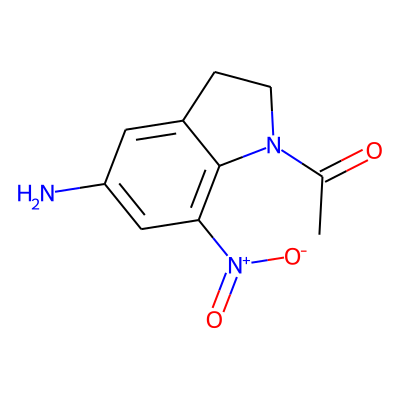 CC(=O)N1CCc2cc(N)cc([N+](=O)[O-])c21| HBA: | 6 | RingCount: | 2 |
