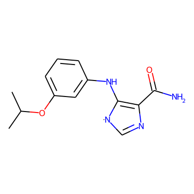 CC(C)Oc1cccc(NC2=C(C(N)=O)N=C[N]2)c1| HBA: | 6 | RingCount: | 2 |