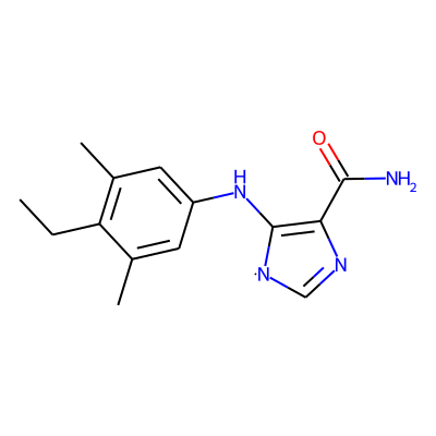 CCc1c(C)cc(NC2=C(C(N)=O)N=C[N]2)cc1C| HBA: | 5 | RingCount: | 2 |