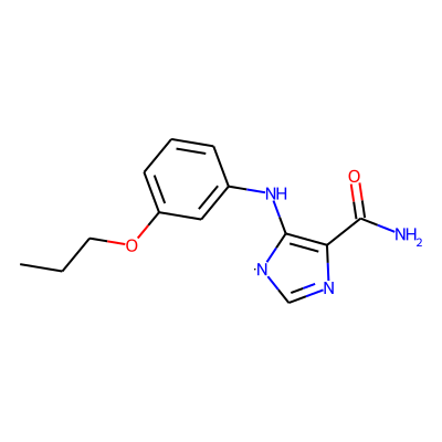 CCCOc1cccc(NC2=C(C(N)=O)N=C[N]2)c1| HBA: | 6 | RingCount: | 2 |