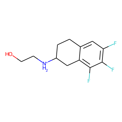 OCC[NH2+]C1CCc2cc(F)c(F)c(F)c2C1| HBA: | 2 | RingCount: | 2 |