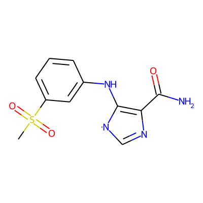 CS(=O)(=O)c1cccc(NC2=C(C(N)=O)N=C[N]2)c1| HBA: | 7 | RingCount: | 2 |