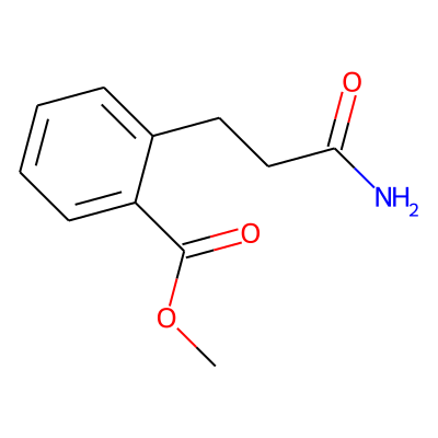 COC(=O)c1ccccc1CCC(N)=OHBA: | 4 | RingCount: | 1 |