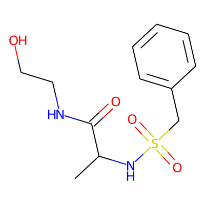 CC(NS(=O)(=O)Cc1ccccc1)C(=O)NCCOHBA: | 6 | RingCount: | 1 |