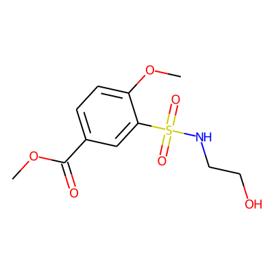 COC(=O)c1ccc(OC)c(S(=O)(=O)NCCO)c1HBA: | 7 | RingCount: | 1 |