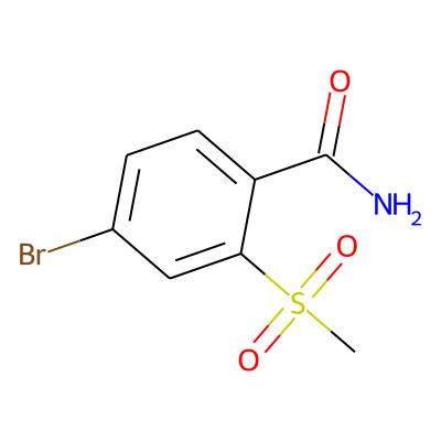 CS(=O)(=O)c1cc(Br)ccc1C(N)=OHBA: | 4 | RingCount: | 1 |