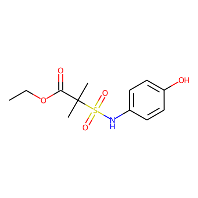 CCOC(=O)C(C)(C)S(=O)(=O)Nc1ccc(O)cc1HBA: | 6 | RingCount: | 1 |