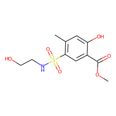 COC(=O)c1cc(S(=O)(=O)NCCO)c(C)cc1OHBA: | 7 | RingCount: | 1 |