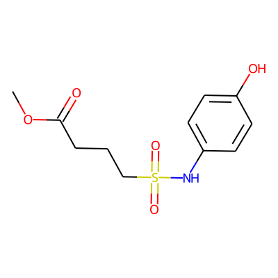 COC(=O)CCCS(=O)(=O)Nc1ccc(O)cc1HBA: | 6 | RingCount: | 1 |