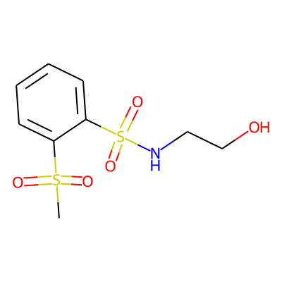 CS(=O)(=O)c1ccccc1S(=O)(=O)NCCOHBA: | 6 | RingCount: | 1 |