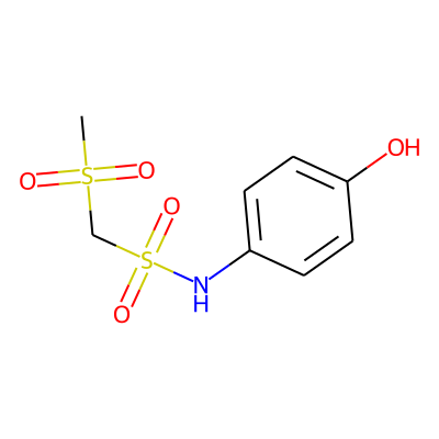 CS(=O)(=O)CS(=O)(=O)Nc1ccc(O)cc1HBA: | 6 | RingCount: | 1 |