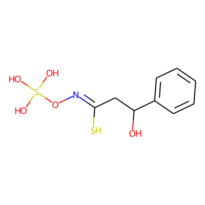 OC[C@H]1O[C@@H](S/C(C[C@@H](O)c2ccccc2)=N\OS(O)(O)O)[C@H](O)[C@@H](O)[C@@H]1OAglycone: