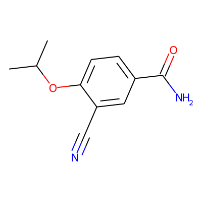 CC(C)Oc1ccc(C(N)=O)cc1C#NHBA: | 4 | RingCount: | 1 |