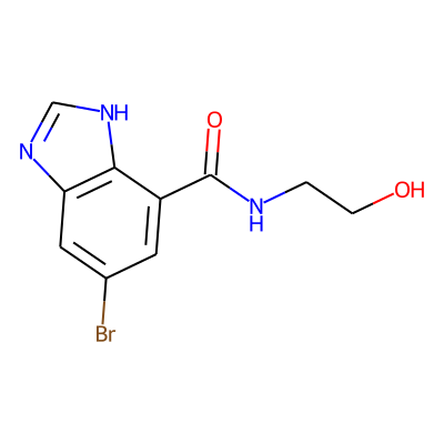 O=C(NCCO)c1cc(Br)cc2nc[nH]c12| HBA: | 5 | RingCount: | 2 |