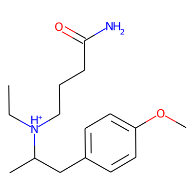 CC[NH+](CCCC(N)=O)C(C)Cc1ccc(OC)cc1HBA: | 4 | RingCount: | 1 |