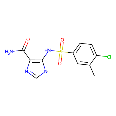 Cc1cc(S(=O)(=O)NC2=C(C(N)=O)N=C[N]2)ccc1Cl| HBA: | 7 | RingCount: | 2 |