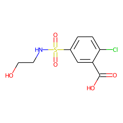 O=C(O)c1cc(S(=O)(=O)NCCO)ccc1ClHBA: | 6 | RingCount: | 1 |