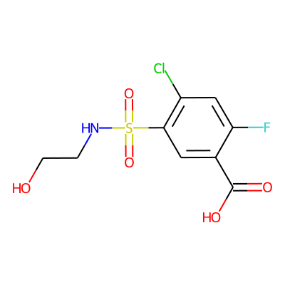 O=C(O)c1cc(S(=O)(=O)NCCO)c(Cl)cc1FSugarmoiety: