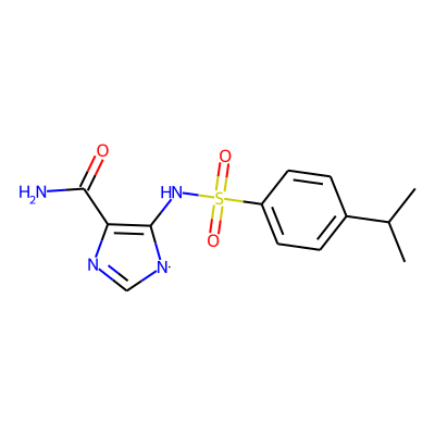 CC(C)c1ccc(S(=O)(=O)NC2=C(C(N)=O)N=C[N]2)cc1| HBA: | 7 | RingCount: | 2 |