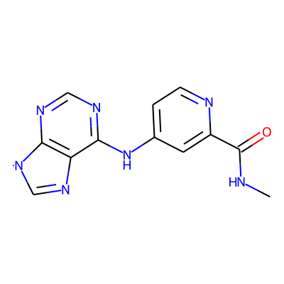 CNC(=O)c1cc(Nc2ncnc3c2N=C[N]3)ccn1| HBA: | 8 | RingCount: | 3 |