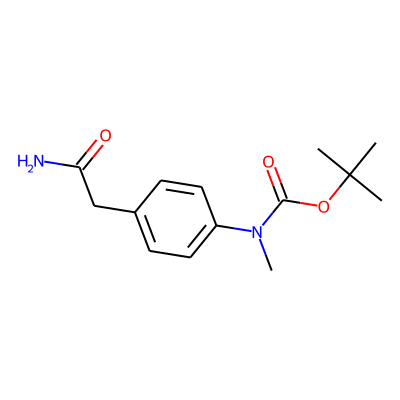 CN(C(=O)OC(C)(C)C)c1ccc(CC(N)=O)cc1HBA: | 5 | RingCount: | 1 |