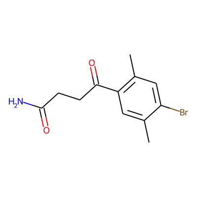 Cc1cc(C(=O)CCC(N)=O)c(C)cc1BrHBA: | 3 | RingCount: | 1 |