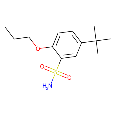 CCCOc1ccc(C(C)(C)C)cc1S(N)(=O)=OHBA: | 4 | RingCount: | 1 |