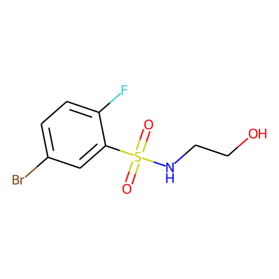 O=S(=O)(NCCO)c1cc(Br)ccc1FHBA: | 4 | RingCount: | 1 |