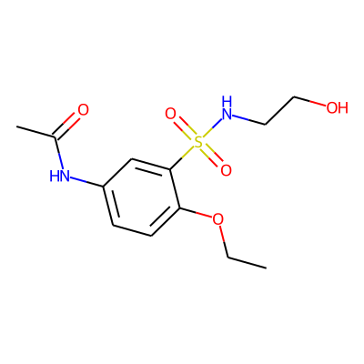 CCOc1ccc(NC(C)=O)cc1S(=O)(=O)NCCOHBA: | 7 | RingCount: | 1 |