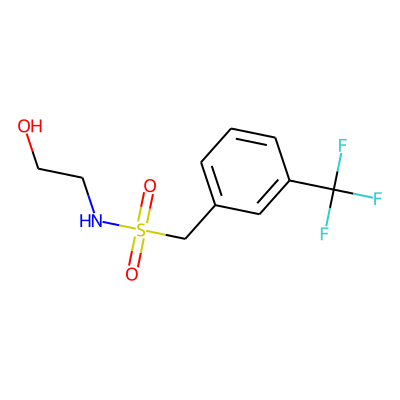 O=S(=O)(Cc1cccc(C(F)(F)F)c1)NCCOHBA: | 4 | RingCount: | 1 |