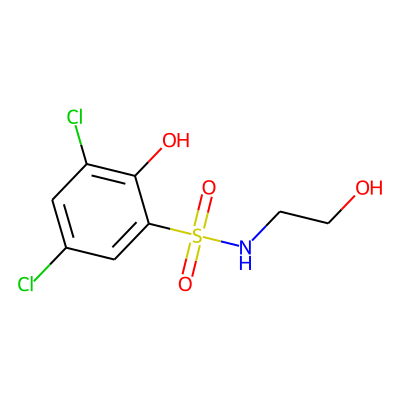 O=S(=O)(NCCO)c1cc(Cl)cc(Cl)c1OHBA: | 5 | RingCount: | 1 |