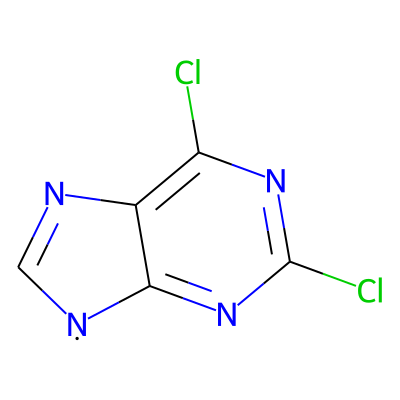 Clc1nc(Cl)c2c(n1)[N]C=N2| HBA: | 4 | RingCount: | 2 |