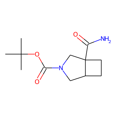 CC(C)(C)OC(=O)N1CC2CCC2(C(N)=O)C1| HBA: | 5 | RingCount: | 2 |
